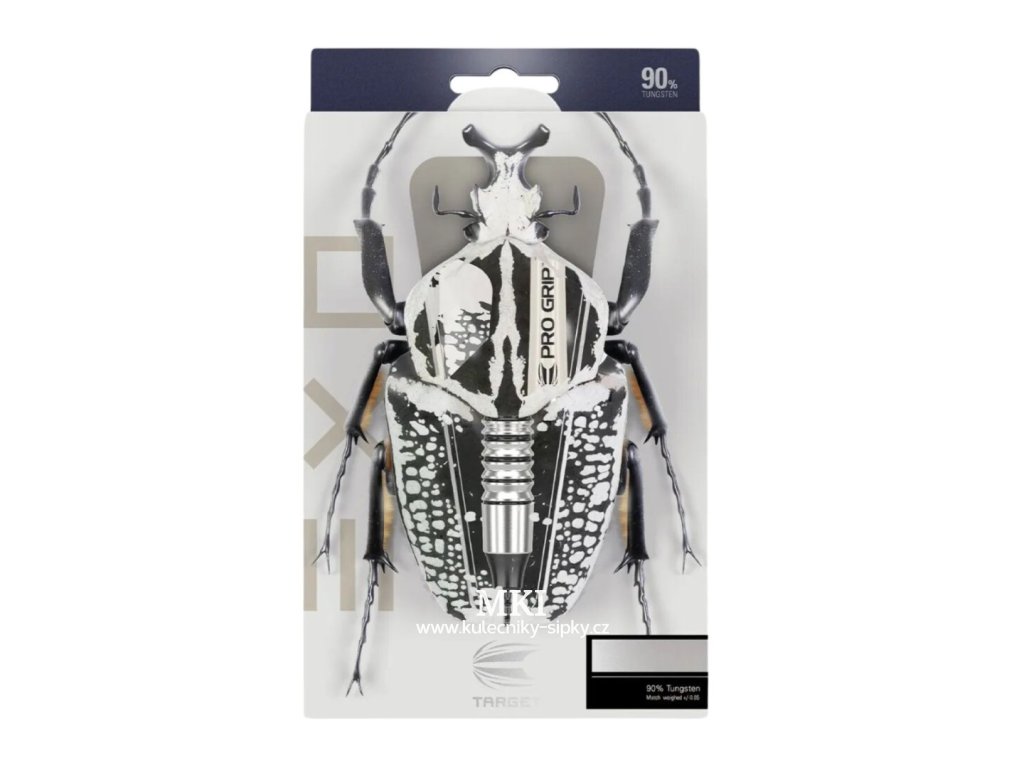 Softové wolframové šipky Exo (90% tungsten) jsou šipky v jedinečném designu. Barrely zvýrazňují černé drážky. Barrely jsou doplněny násadkami Pro Grip a letkami Target.